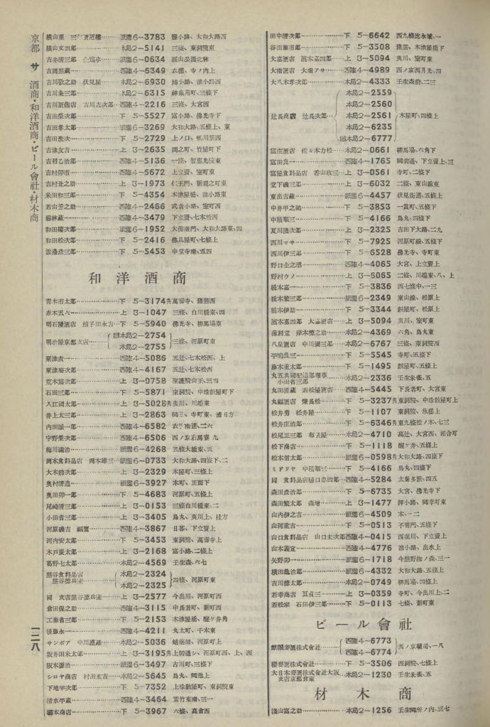 調べてみたところ、1934年(昭和9年)9月時点の『京阪神職業別電話名簿』に若松屋酒店の登録を確認できました。住所は『下長者町、大宮東』となっていてフィルムのデータと一致します。