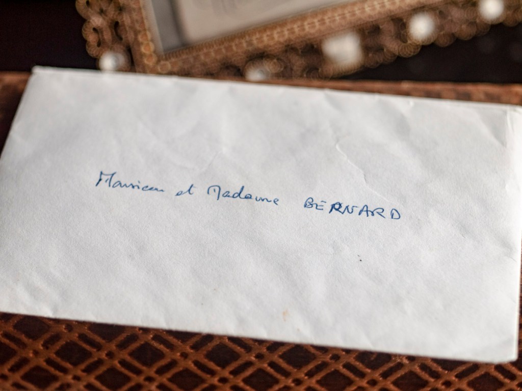 封筒の表書きにある「ベルナール夫妻」は、文化遺産の保存活動により仏芸術文化勲章を2度受章しているアンドレ・ベルナール氏(André Bernard, 1934 – 2018)とその夫人である歌手のジョジ―・アンドリユさん(Josy Andrieu, 1939 – 2022)を指しています。同氏が2018年に亡くなった後に相続財産の管理を行っている人物がセートにおられ、今回、その人物と直接取引をする形でフィルムを入手しました。