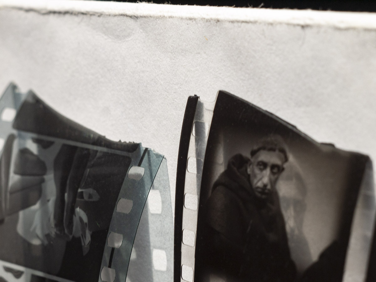 フィルムの素性について事前の情報は一切なく、到着してから確認作業を開始。後述するように封筒には『裁かるるジャンヌ』ではないフィルム(35ミリネガ3枚)が混じっており、そちらを除けてから同定作業に取り掛かっていきます。