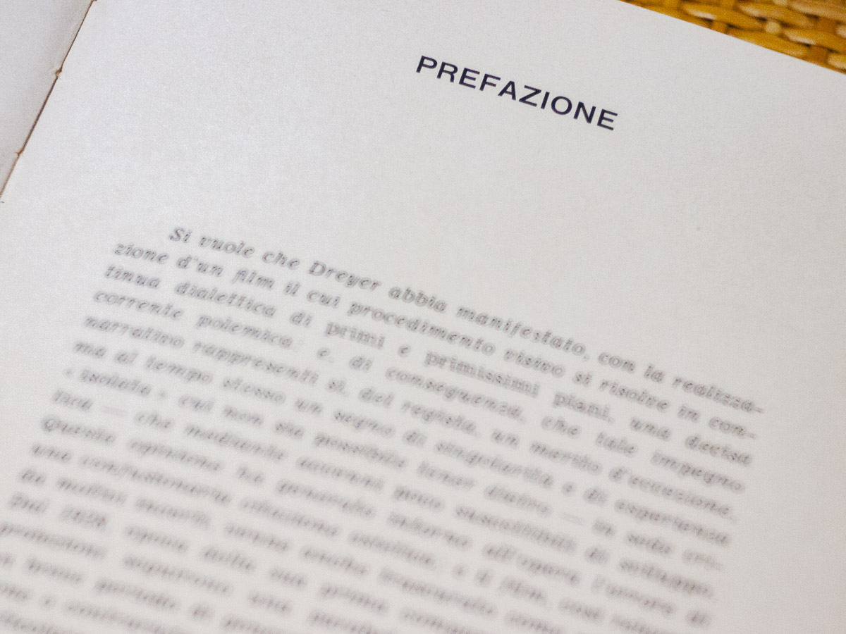 1945年にイタリアで公刊された書籍で、118枚のスクリーンショットを通じて『裁かるるジャンヌ』の物語を再構成した一冊。ミラノに拠点を置いていたドムス出版社が戦後に開始した「映画ライブラリー」叢書の第2番に当たります。