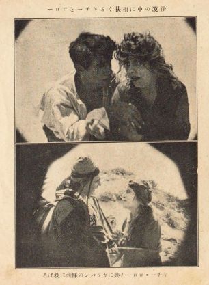 1915年の宣材用絵葉書(左)と『活動之世界』収録のスチル写真(右)