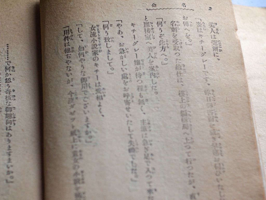 今回入手したのは春江堂から出版された大活劇文庫版で大正9年の第26刷。裏表紙に「江東書院発行」の文字が見られます。以前に大活劇文庫紹介の記事で触れたように、編集者の高橋友太郎氏は当初春江堂からの出版と、自宅を拠点とした自費出版(江東書院)を同時並行で行っており、元々江東書院で出されていた『名金』の版をそのまま春江堂に持ちこんで増刷したと考えられます。