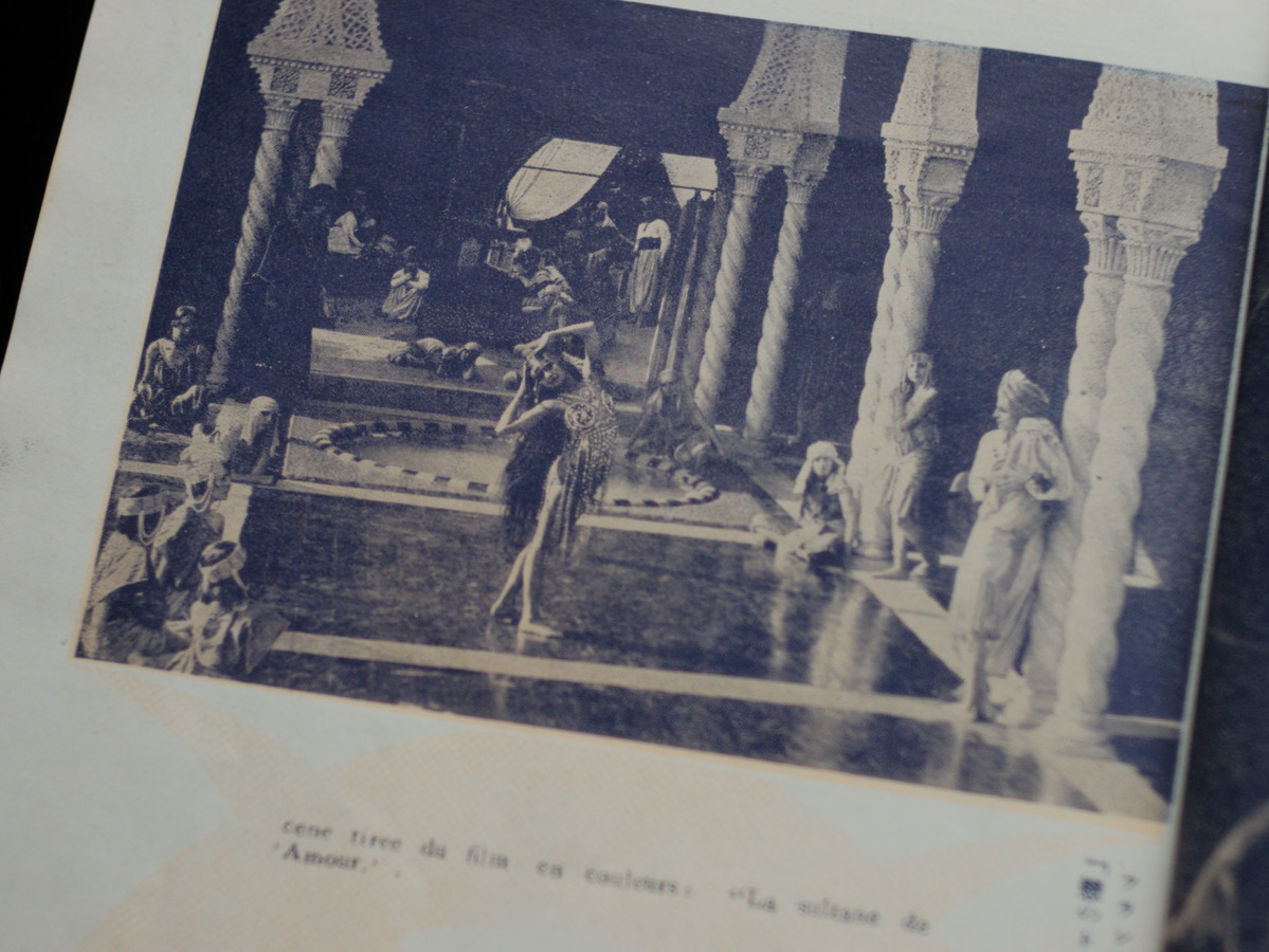 巻頭カラーグラビアを飾るのはアラ・ナジモヴァ(『孔雀夫人』)で、単色グラビアにエディス・ロバーツ、カーメル・マイヤース、トム・ムーア、モンロー・サルツベリー等が登場。「アラビアン・ナイト」として紹介されているのは今回当時物のプログラムを紹介している仏映画『戀のサルタン』です。