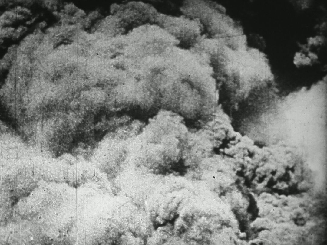 とはいえ1920年代中盤に大都市の滅亡を描き切る技術はまだなく、ミニチュアを使用した原始的特撮と実際に発生した火事の映像を組みあわせています。また雷光がとどろく場面では何も映っていないコマを断続的に挟んで空が明滅している効果を出していました。