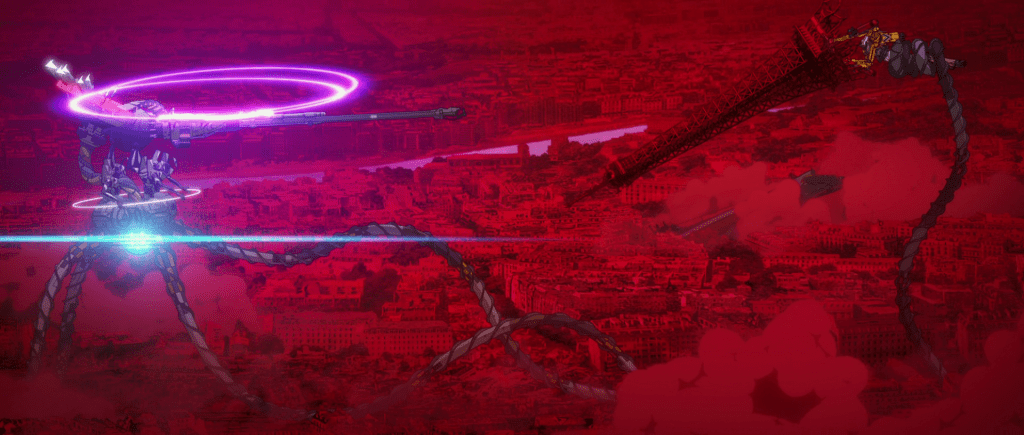 身近な例では『シン・エヴァンゲリオン劇場版:||』(2021年)の冒頭、真っ赤にコア化したパリ上空での戦闘場面で、マリ・イラストリアス操縦する8号機がエッフェル塔を振り回していたのが記憶に新しい所。映画史のDNAを色々遡っていくと1世紀前のこういった作品に辿りついたりします。