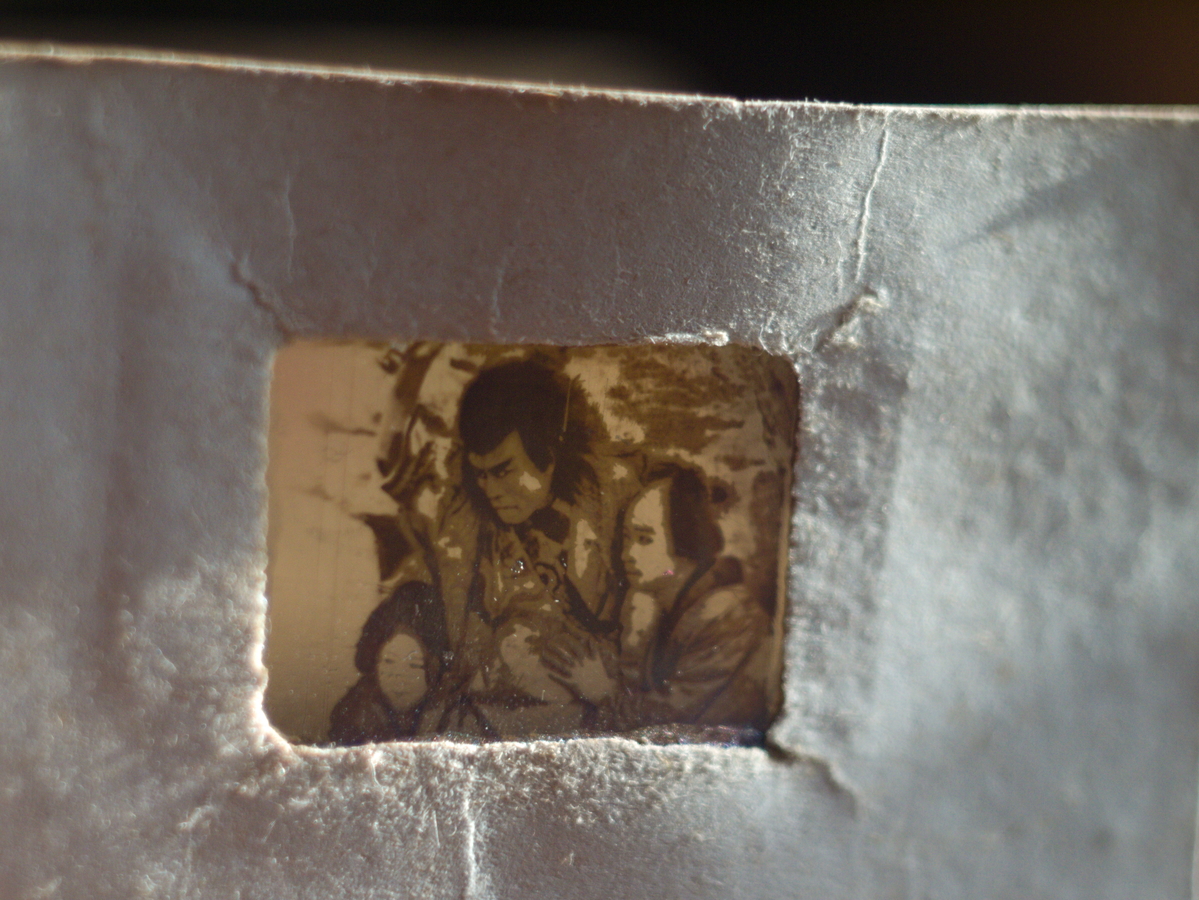 「映画」、むしろシネマトグラフと呼ばれていた何かは、自然光であるとか透過光であるとか、観る者が光の加減を好みや機嫌で変えたりする自由さを切り捨てることで誕生してきています。パテオラマはその裏を突く形で光と影の戯れを再発見していく装置でした。齣フィルムを自家製台紙で鑑賞し、その輝きに胸を躍らせていた愛好家たちもまた、異なった道筋で同じ結論に辿りついていたのでしょうね。