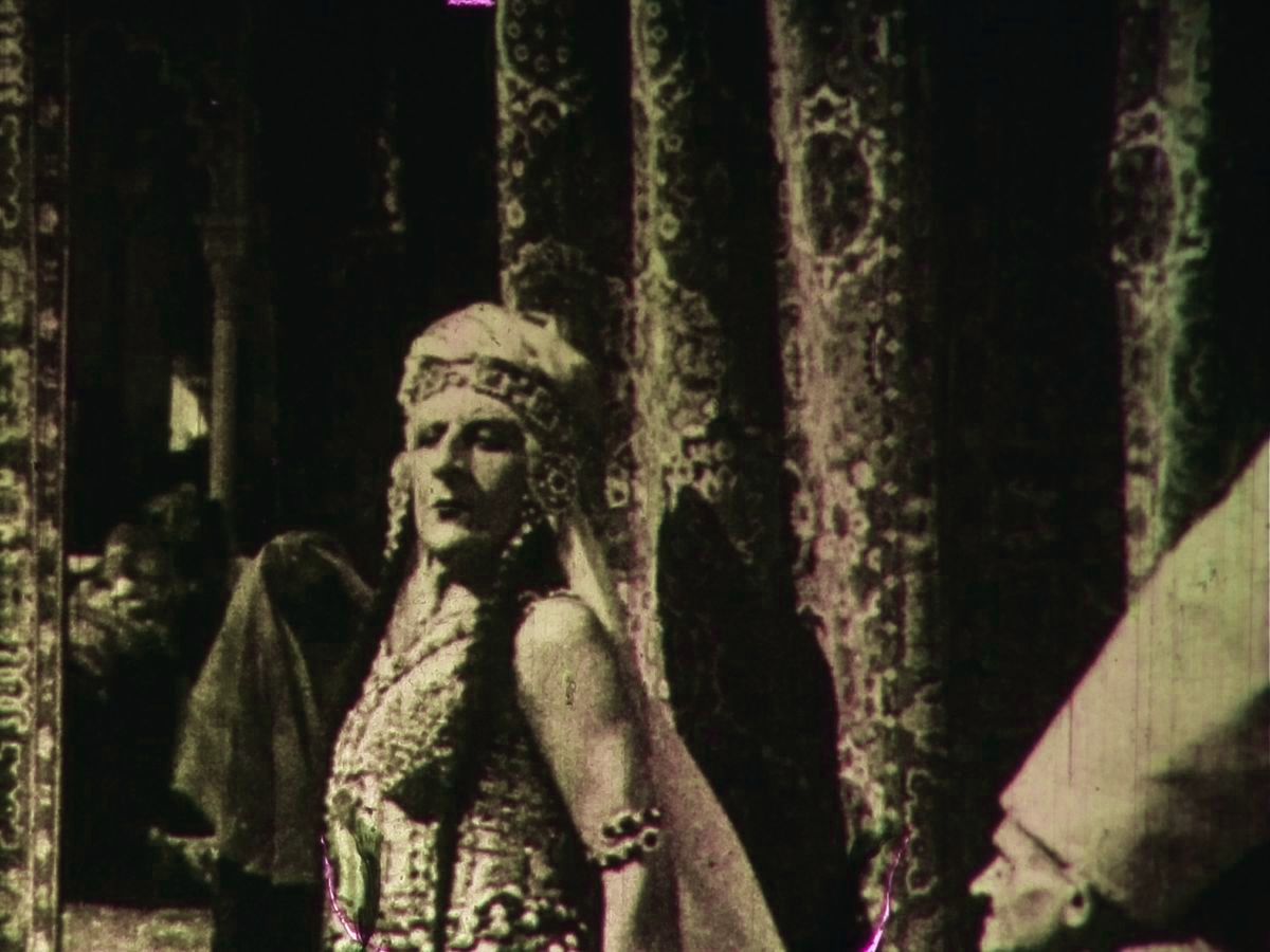 『千一夜物語』は1932年に英パテスコープ社が初めて9.5ミリ化(3巻物)、同社でも数少ない調色プリントとして発売されました。35ミリ版は確認されておらず現時点では9.5ミリ版のみ現存。2010年代中盤に英国のフィルム蒐集家クリストファー・バード(Christopher Bird)氏が完全版をデジタル化しており国外の映画祭で何度か上映されています。