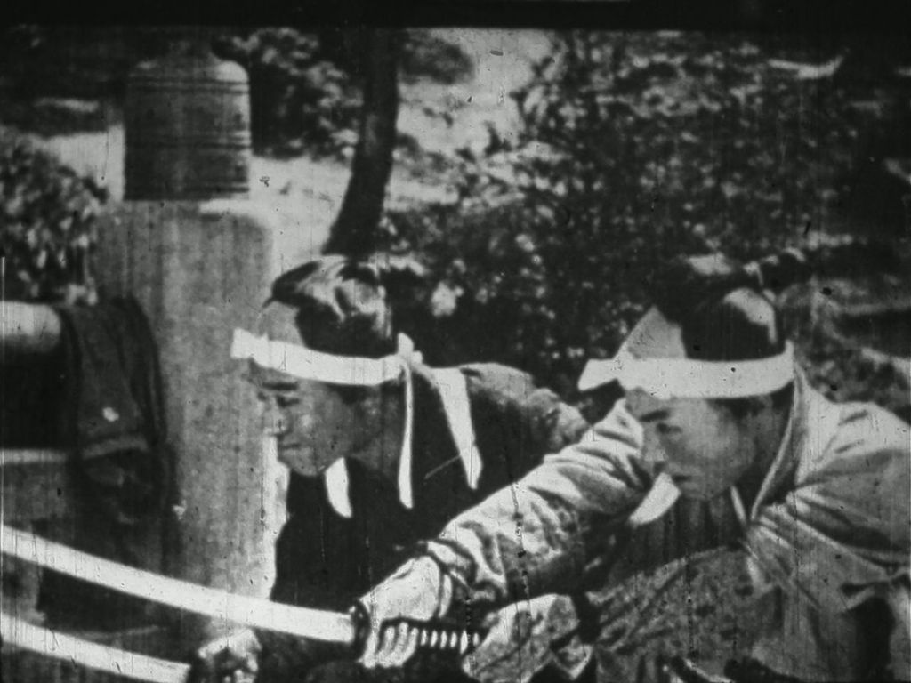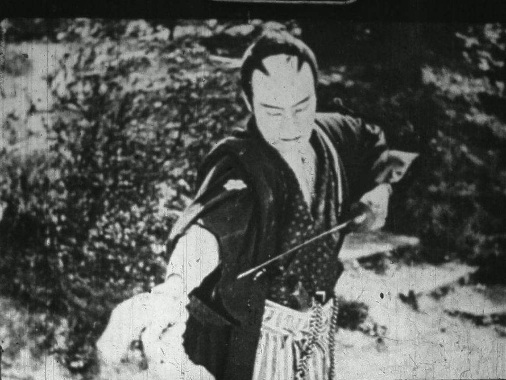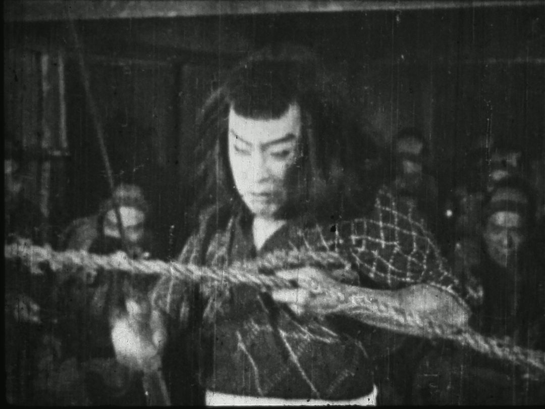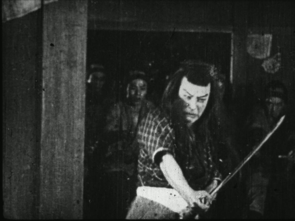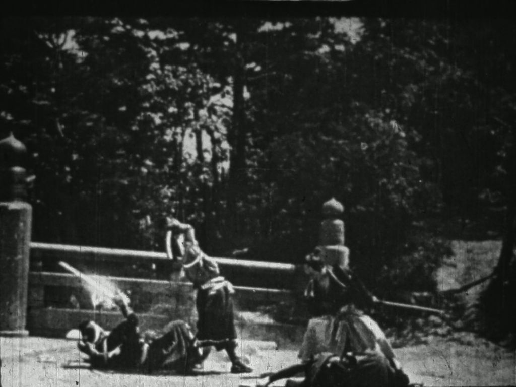 今回入手したフィルムは物語の序破急でいうと「序」に相当。この後佐橋が城戸を斬って仲間の恨みを晴らし、一方で夏繪(桜木梅子)は父の仇を小五郎と思いこみ、天人お吉(酒井米子)の動きに同調していきます。お吉には会うことを禁じられている息子・新吉(中村英雄)がいて、二人の再会までの物語が劇的に語られていく一方、新選組による包囲網が功を奏し、桂・佐橋は次第に追い詰められていきます。近衛公から毛利公への親書を託された佐橋が新選組に包囲され、満身創痍で血路を切り開き、命がけで桂に手紙を託す第三部のクライマックスに展開していきます。