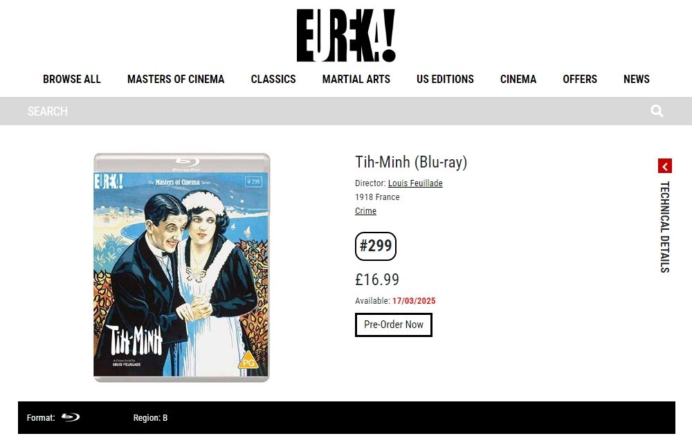 昨年10月に投稿したように、2024年11月に英ユリイカ・エンターテイメント社からフイヤード監督の4枚組ブルーレイセットが発売されました。2000部限定だったため現時点で既に終売。一部転売屋に流れてしまったのが残念…と地団太踏んでいたところ4作のバラ売り決定(『ファントマ』/