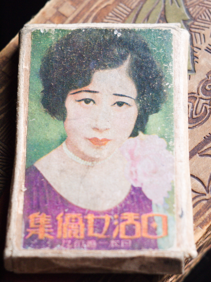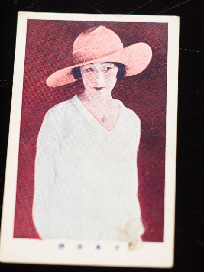 以前に『阪東妻三郎』を紹介したのと同じ「日本一鳩印」の豆ブロマイドセット。『阪東妻三郎』が「十一」だったのに対しこちらはナンバリングが「九」になっています。十八枚入りで内訳は以下の通り: