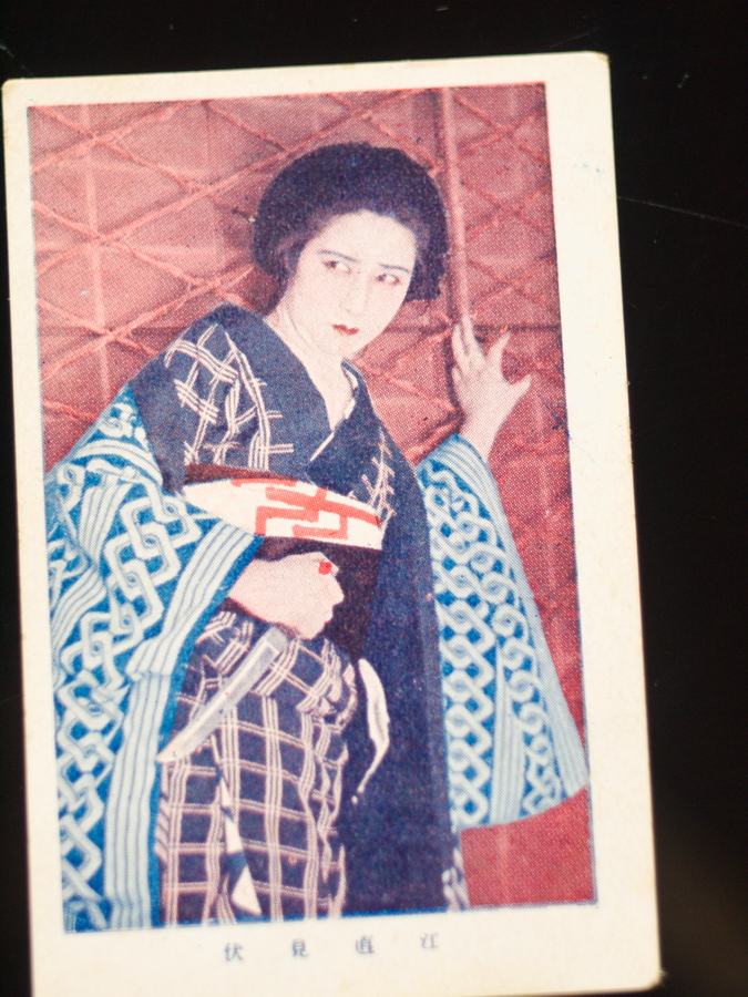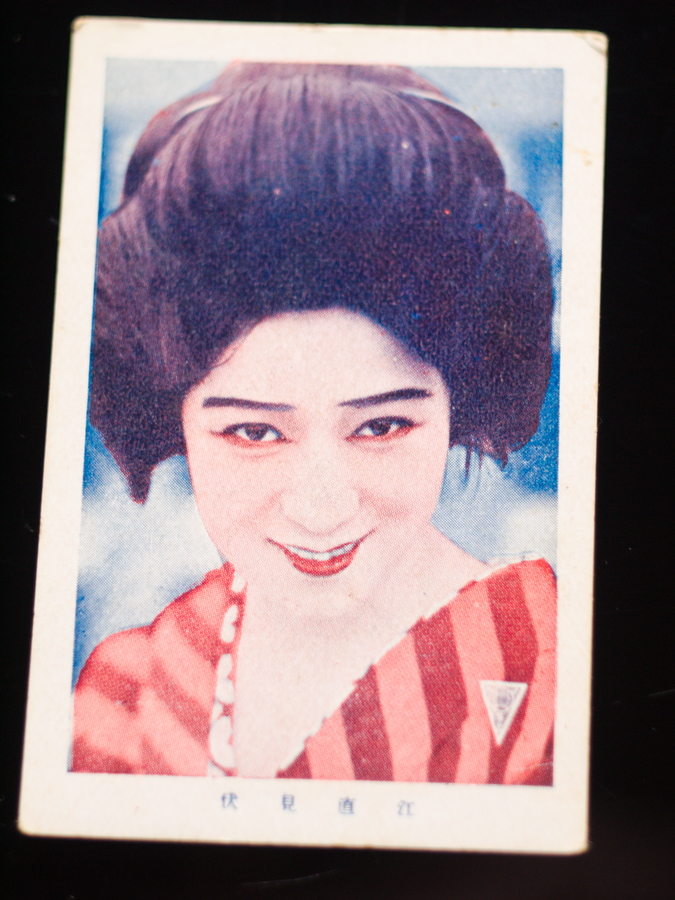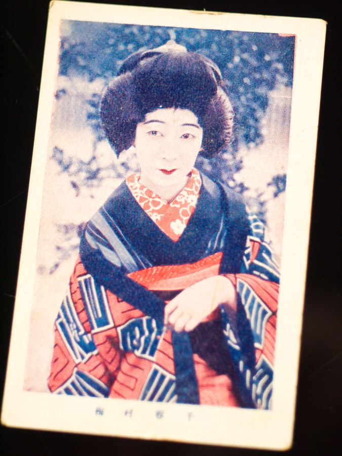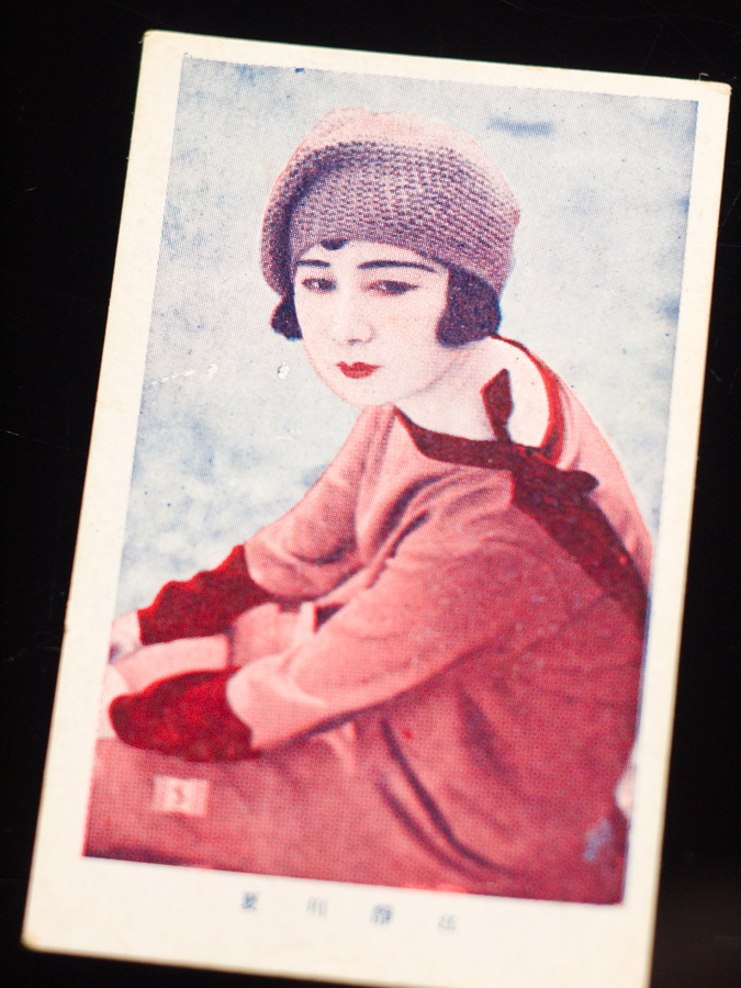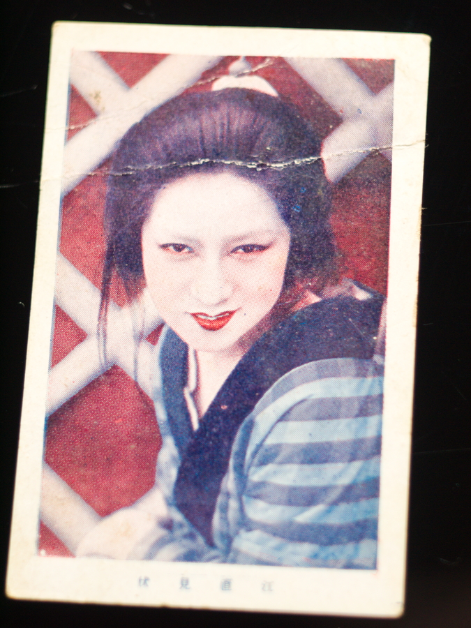 外箱(夏川静江さん)のみフルカラーでブロマイド自体は赤・青・黒の三色で刷られています。
