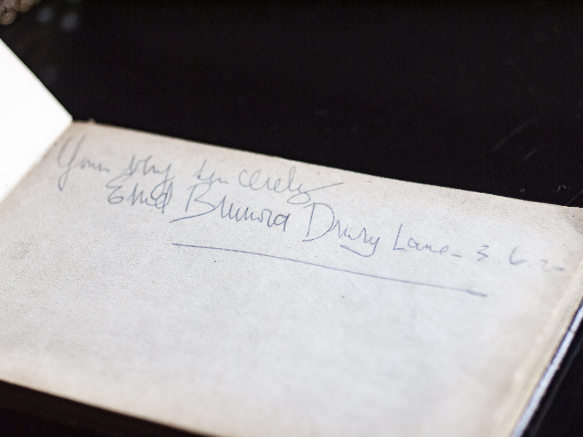 英国在住のチャールズ・トープ氏 (Charles Thorp)について詳しい情報は知られておりません。1910年代末から20年代にかけて舞台の照明技師をされていたようです。当時の大衆芸術の花舞台だったドルーリー・レーン王立劇場やコベント・ガーデン王立歌劇場で勤務を続け、合間に出演アーティストのサインを集めていました。