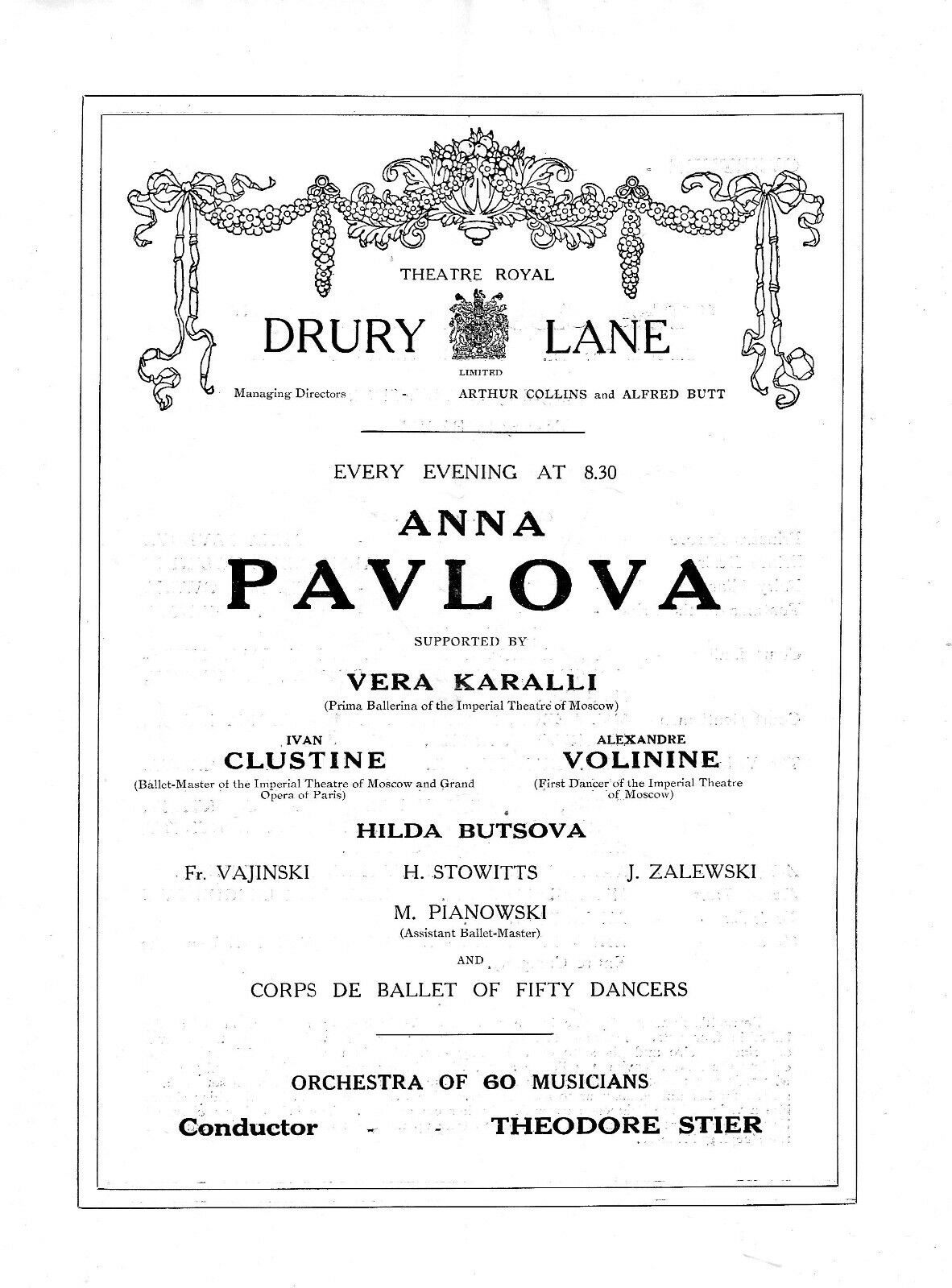 『パヴロワ夫人のロシアバレエ団』 ドルーリー・レーン 1920