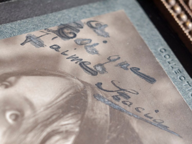 1910年代前半に日本でも人気のあったスタシア・ナピエルコウスカが親しい知人(交際相手の可能性もあり)宛に残したメッセージ入りのキャビネット写真。