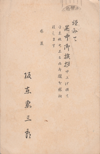 戦前・戦中 髙島栄一・康彰氏旧蔵の葉書群 岡島艶子、昭和2年(1927年)の寒中伺い 澤村春子、昭和2年(1927年)の残暑見舞い 西條香代子、昭和3年(1928年)の年賀状 若葉馨、昭和3年(1928年)の転職報告 杉狂児、昭和3年(1928年)の暑中見舞い 西條香代子、昭和3年(1928年)の暑中見舞い 東郷久義、昭和5年(1930年)の暑中見舞い 小泉嘉輔、昭和9年(1934年)の暑中見舞い 阪東妻三郎、昭和9年(1934年)の暑中見舞い 里見明、昭和11年(1936年)の年賀状 中根龍太郎、昭和14年(1939年)の暑中見舞い 南光明、昭和15年(1940年)の残暑見舞い 共有する クリックして X で共有 (新しいウィンドウで開きます) X Facebook で共有するにはクリックしてください (新しいウィンドウで開きます) Facebook
