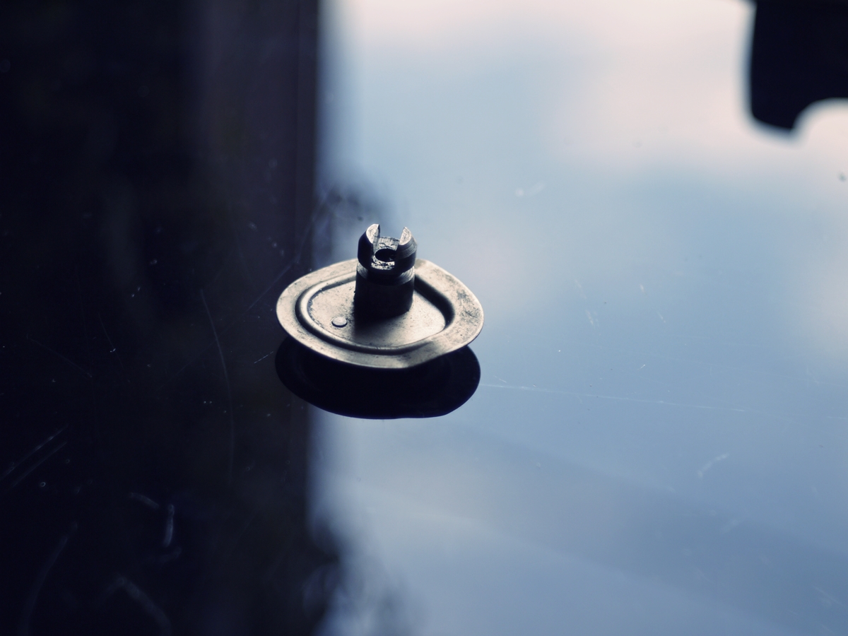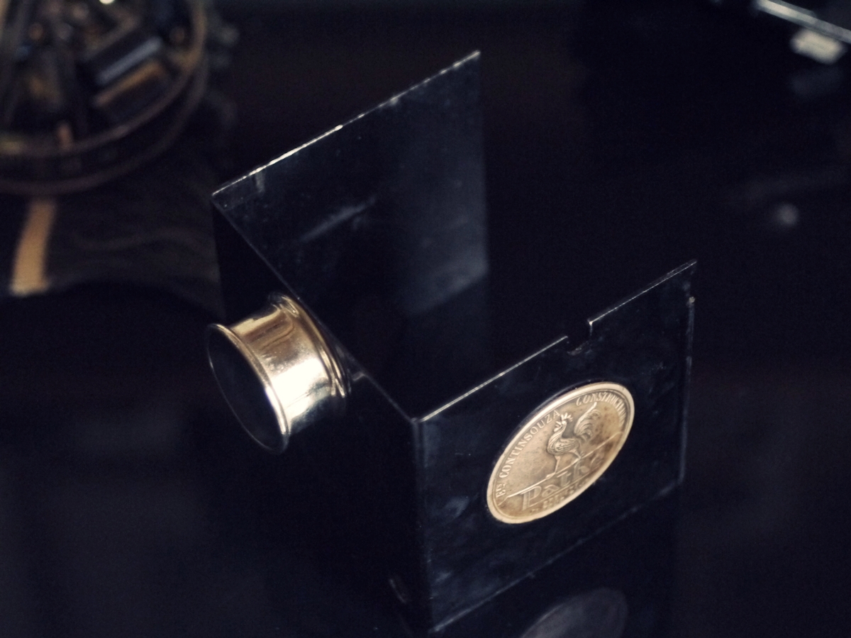 天板の役割だけではなくレンズを固定しフィルムを収めるパーツを統合した「頭」に当たる部分。フィルムを留める部分はトサカのように盛り上がっています。