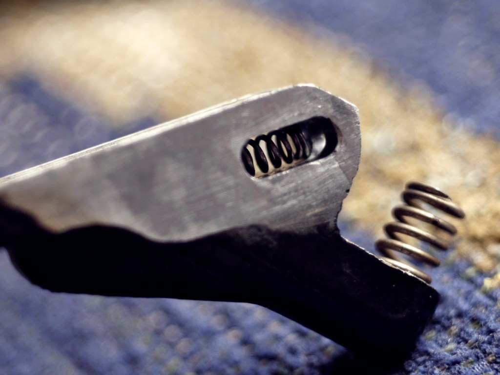 注意すべき点は一つ。ランプハウスのアーム部分の付け根にはバネが一つ隠されています。戻す時にはこのスプリングを奥に押しこめながら棒を差し入れていきます。